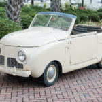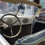 corrosion. One of the previous owners replaced it with a 1952 26 HP Crosley Inline-4 cast iron engine. It translates to 10 HP at the wheels and the car operates on a 6 V battery system.” He explains that the Crosley weighs less than 1100 lbs, has a double shift transmission, sports manual windshield wipers, 12-inch tires, and three speeds. It doesn’t have seatbelts, side view mirrors, or turn signals, which were optional in this model. However, the fact that it gets 50 miles per gallon makes it very economical to drive.