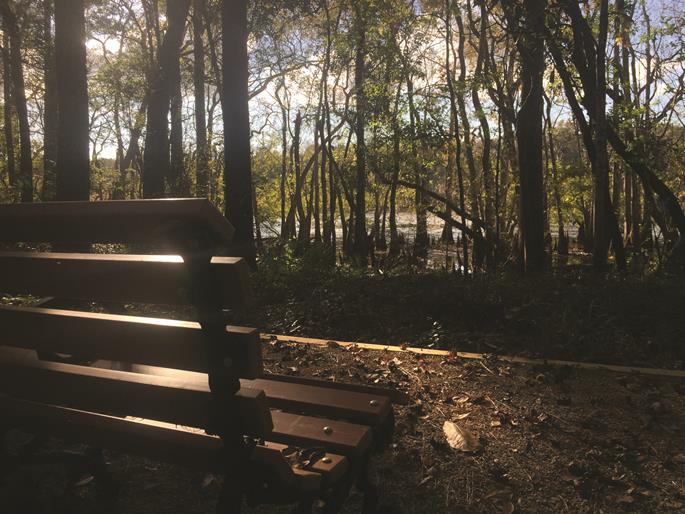 A crunch of leaves underfoot. The buzz of insects in your ear. Wind on the Apalachicola River.
