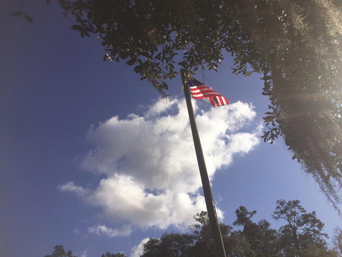 These are the sounds at Fort Gadsden today. There are no longer any voices raised here. No musket fire. No explosions. It’s a place at the end of a long road among pine trees. A lump in the ground. A flag on a pole. In a word: desolate.