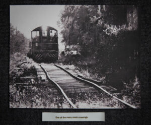 By the 1950s, the M&B was owned by some little lady of a previous generation, and the line fell on hard times in the 1960s due to a federal requirement that stipulated that a railroad must keep running if it has a license. It was purchased by George Tapper and Earl Durden, who similarly had trouble making a profit with the limited boxcar inter-change with the L&N Railroad while the roadbed deteriorated. It got so bad that, once a week, the diesel would ease down the tracks to Blountstown, averaging about 15 miles per hour and two derailments per trip. The trestle over the Chipola River was especially perilous, with the whole thing leaning toward one side and large cables attached to trees reinforcing the beams of creosote-covered wood. The engineer typically would get out at the river and have the train set to go dead slow, while he scurried across ahead of it to remount on the other side. Fortunately, it always made the trip across the Chipola successfully.
