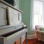 z-IMGP4638There is only one furniture piece that Anna presumes is original. “I really think the Kurtzmann piano was original to the house,” she speculates. “The piano was built between 1910 and 1914. It’s a player piano. The higher the backboard on a piano, the grander the sound. This one is almost as tall as I am.”
