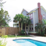 Atlanta residents Anna Hamer and husband Dr. Daniel Jaul call their 108-year old house their home away from home. Purchased in 2003, they picked up where the previous owners left off and restored the home to new glory, learning its history along the way. “We did a lot of research and found that Adam McNealy Lewis (b. 1880) built the house in 1909 for his wife Rosalind Hayes on Greenwood Street in Marianna, Florida. It changed hands several times after Rosalind died in 1949. It was moved to Inlet Beach in 1999. The move made the newspaper, as it had to be transported right through Panama City. It came on three large trucks. The upstairs, downstairs, and porch were moved separately, then reattached.”
