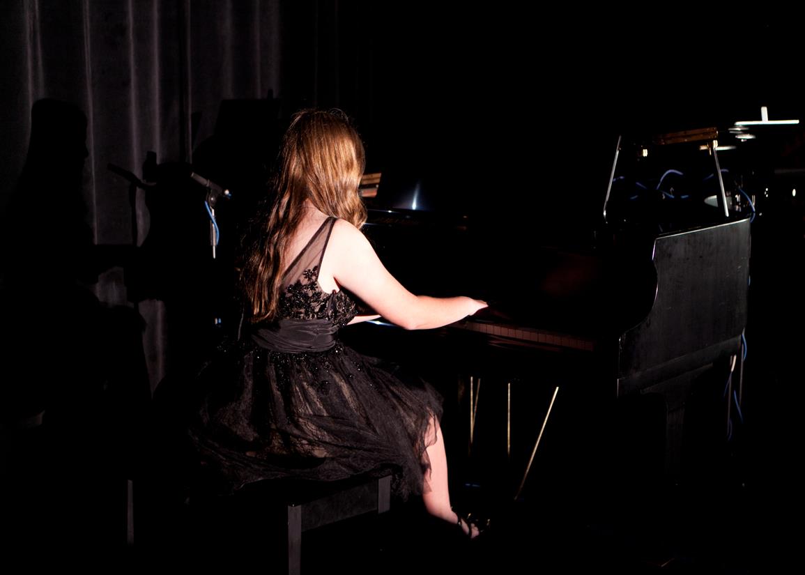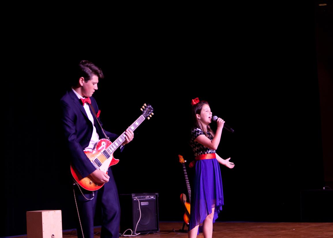 The main event—dinner and a show—was kicked off by Brady Hughes (Bay High School) and Ruby Tilghman (Deer Point Elementary School.) performing the National Anthem after the colors were presented by JROTC students from Rutherford. Dinner music was provided by the following instrumentalists: Cody Smith (Northside Elementary School), Noah Patterson (Mosley High School), Zacchary Vilardi (Bay Virtual School), Robert Love (New Horizons), and Joe Conroy (Rutherford High School).