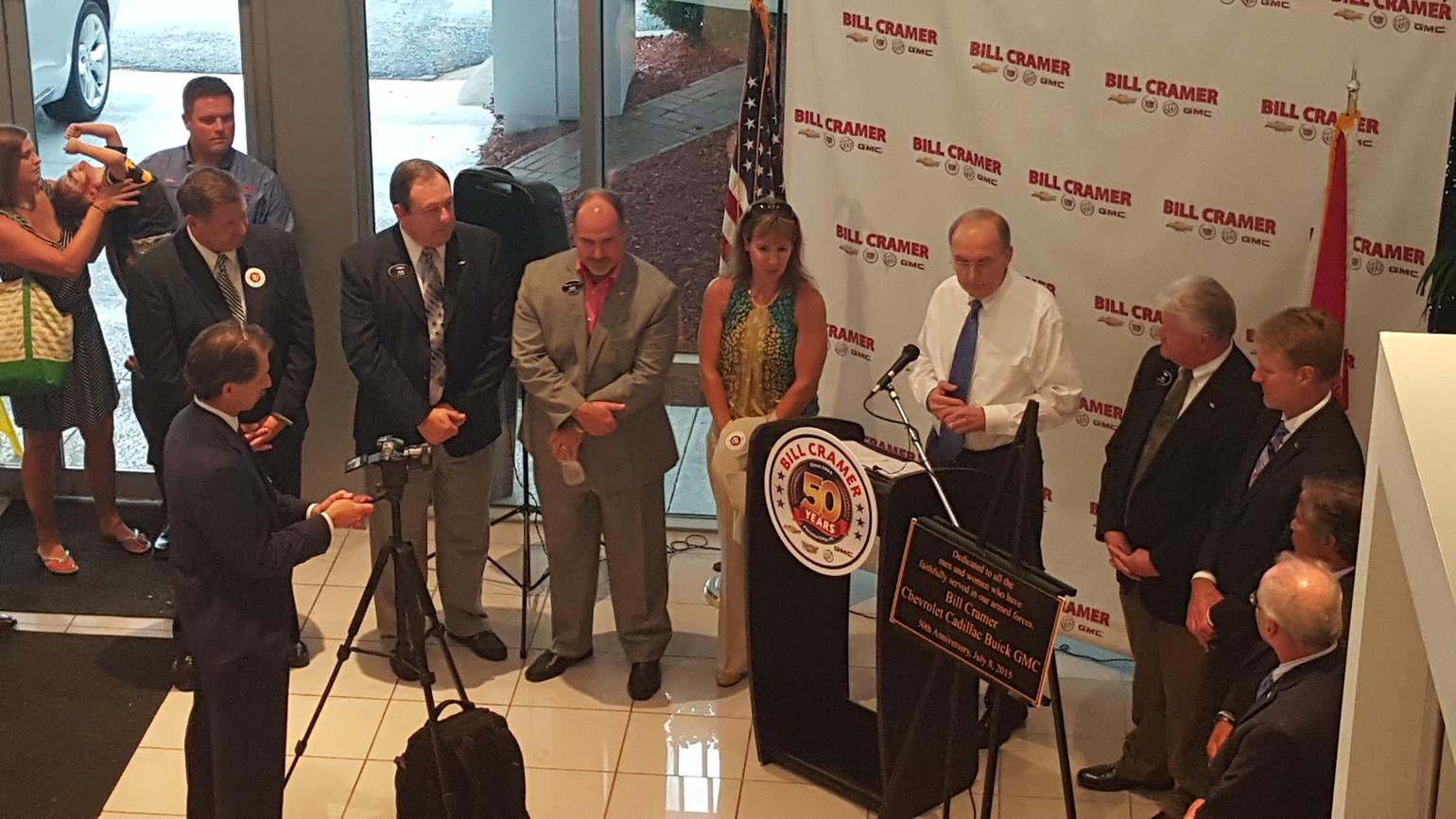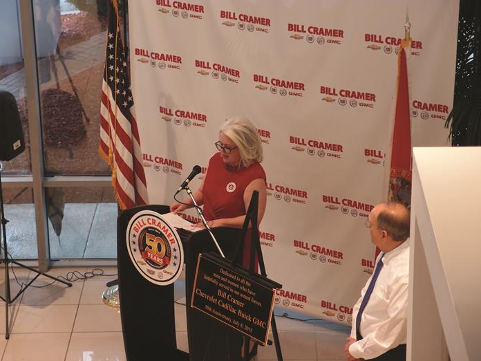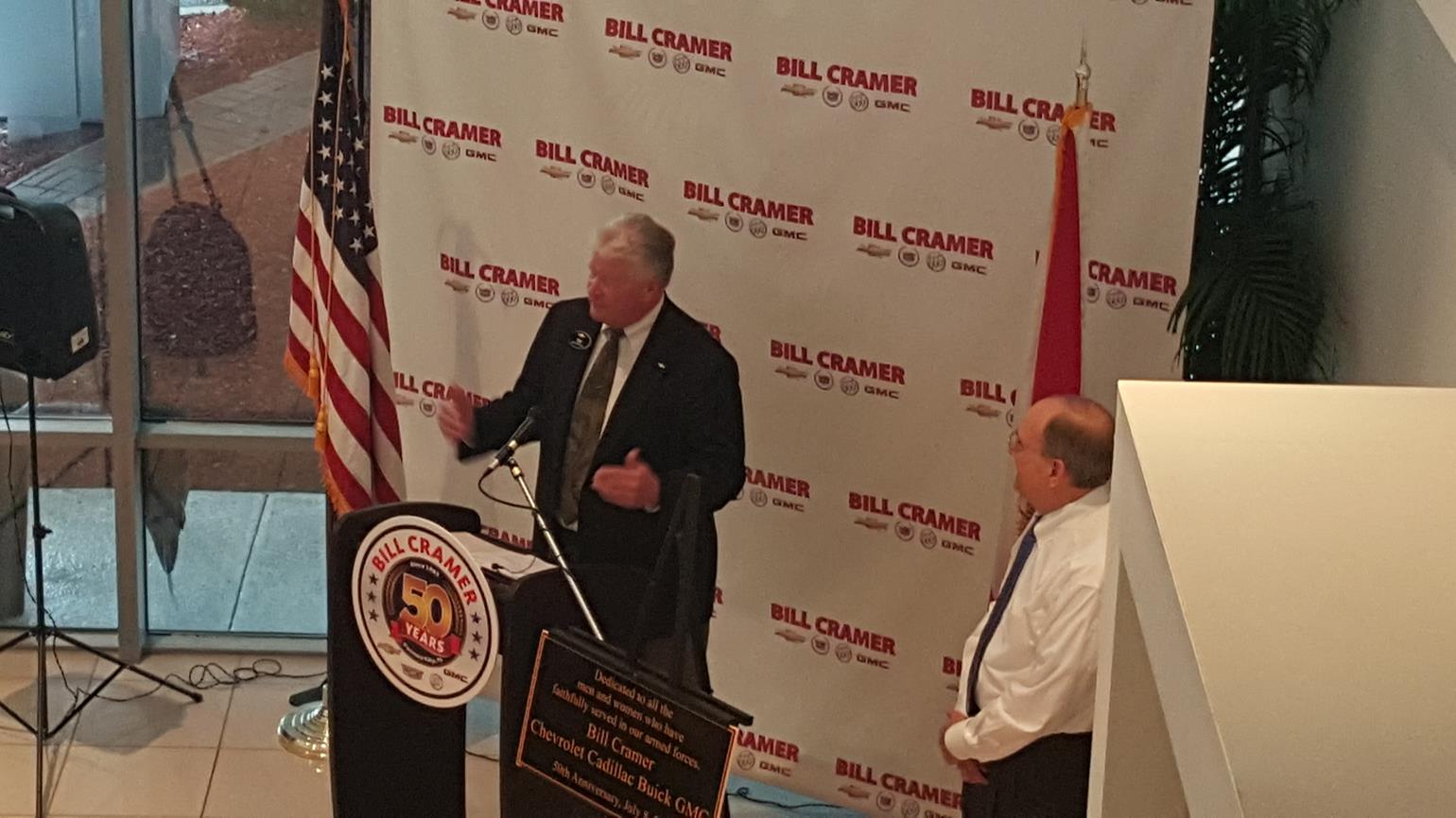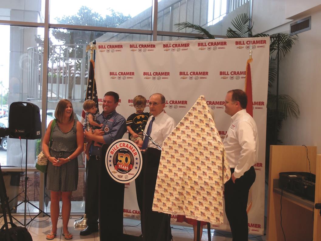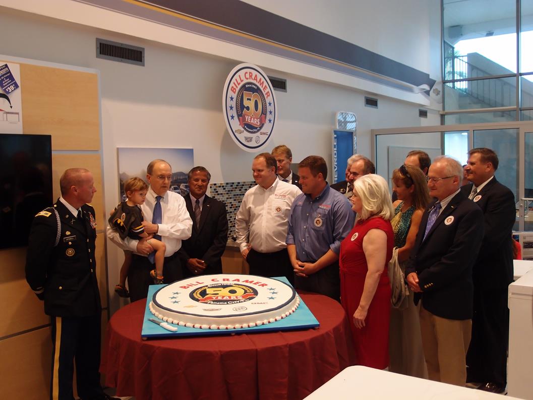 The year 2015 marks half a century of success in business for Bill Cramer and family. In July, hundreds of friends, customers, and business partners participated in the 50-year anniversary celebration of what is now the Bill Cramer Chevrolet Cadillac Buick GMC dealership in Panama City. At the event, held in front of the rededicated American Flag, Bill and Carolyn Cramer shared highlights of their careers and lives.