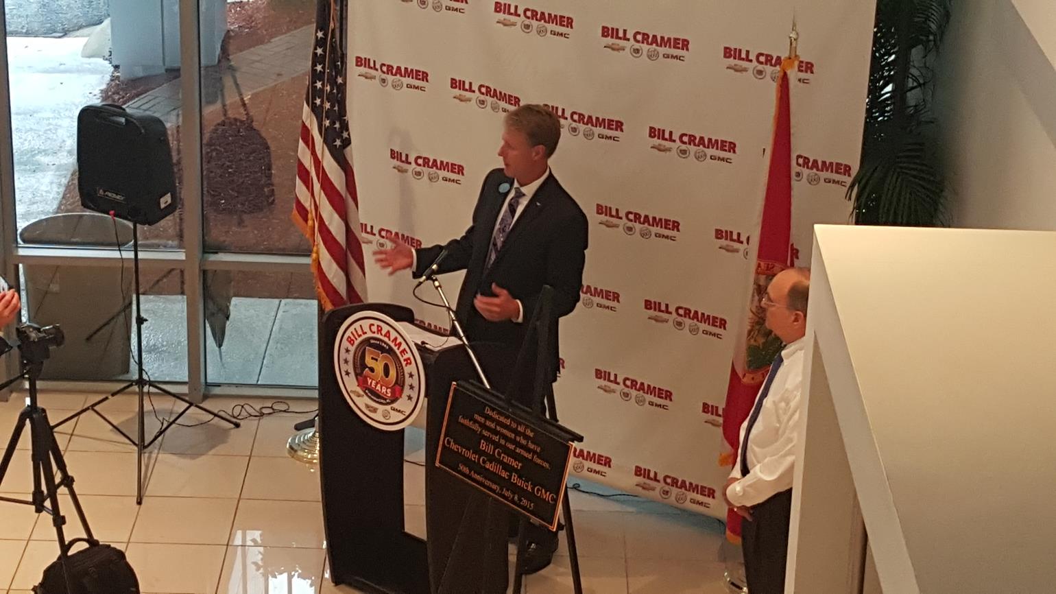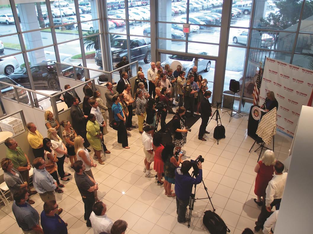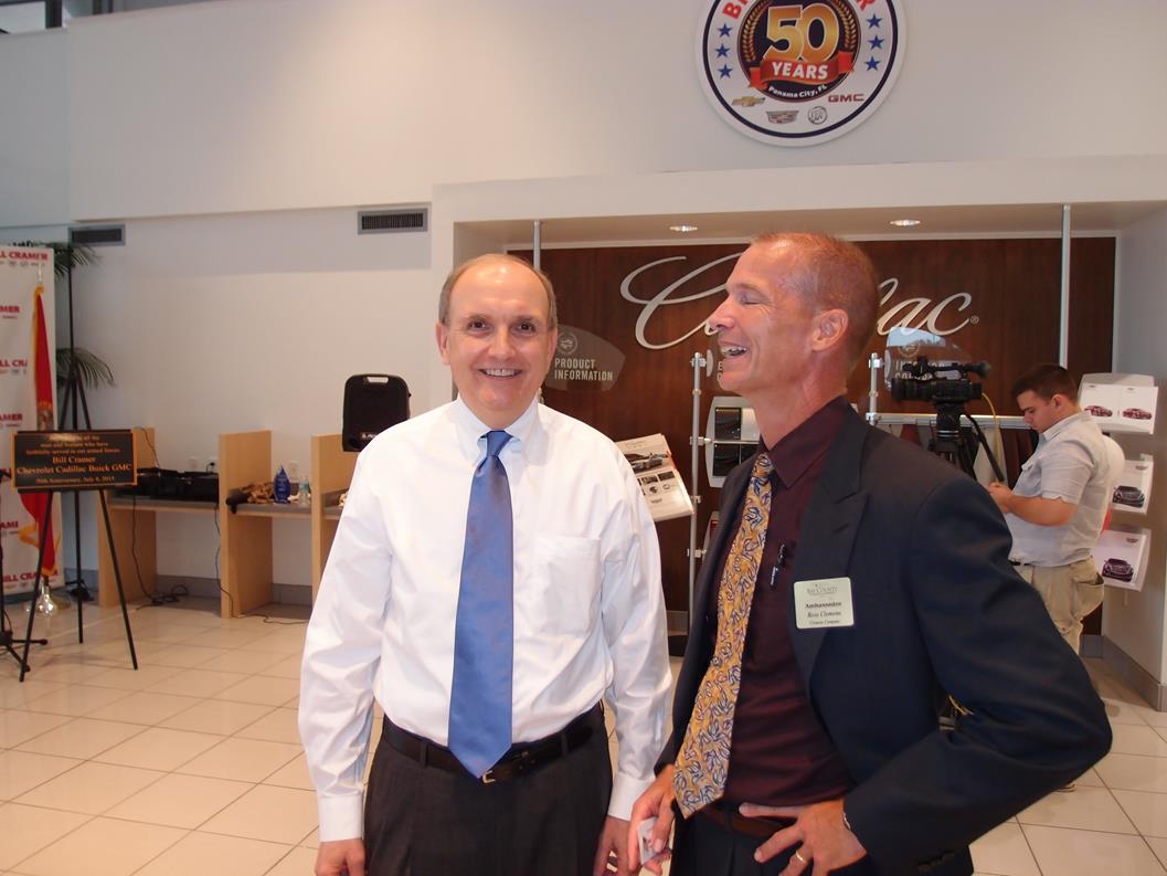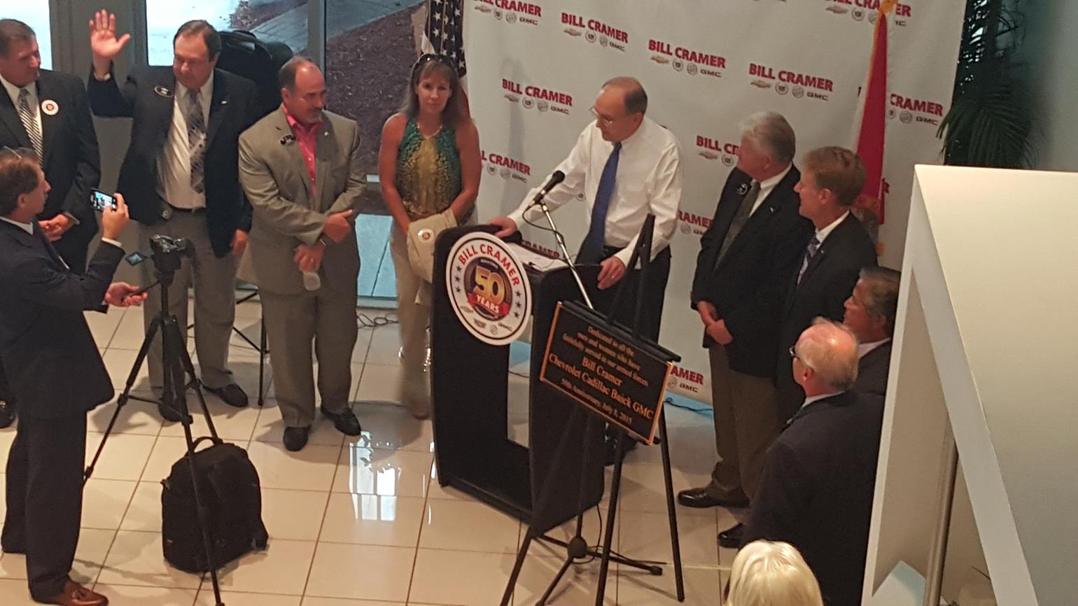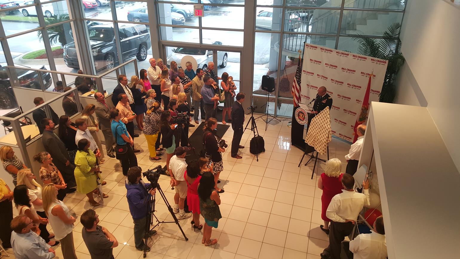 The year 2015 marks half a century of success in business for Bill Cramer and family. In July, hundreds of friends, customers, and business partners participated in the 50-year anniversary celebration of what is now the Bill Cramer Chevrolet Cadillac Buick GMC dealership in Panama City. At the event, held in front of the rededicated American Flag, Bill and Carolyn Cramer shared highlights of their careers and lives.