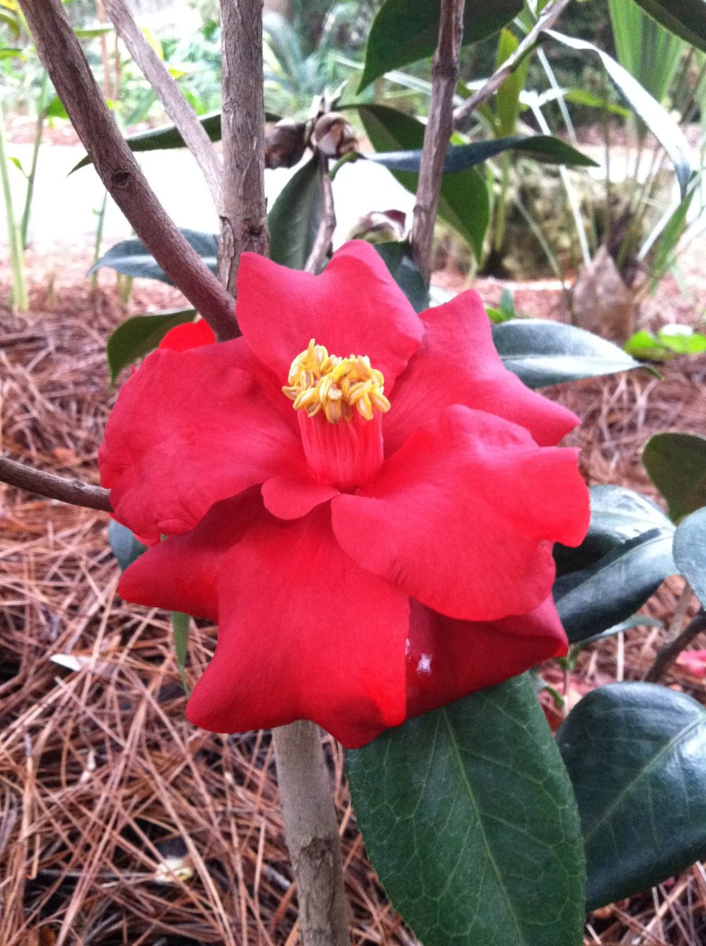 Camellia flowers are enjoyed in the garden and also can be cut and brought inside. When placed in water, they will generally last for a few days. For those who are unable to have camellias in their own gardens, there are two nearby state parks with historic camellia gardens: Eden Gardens State Park and Alfred B. Maclay Gardens State Park. Peak viewing is generally in March, but camellias can be seen flowering throughout most of winter and spring.
