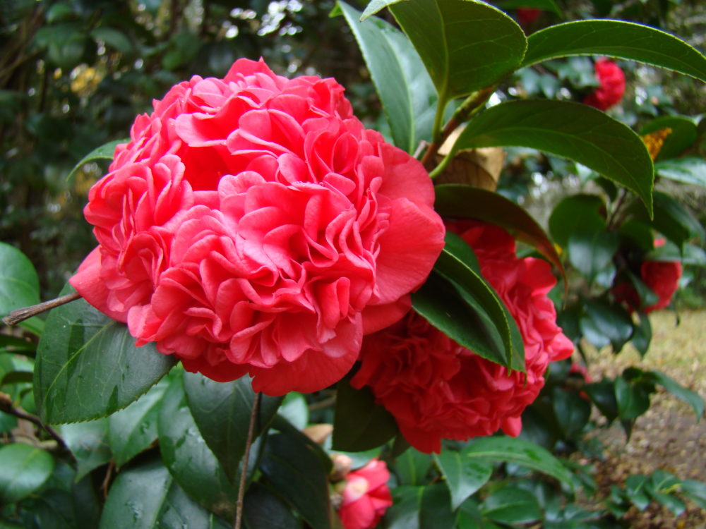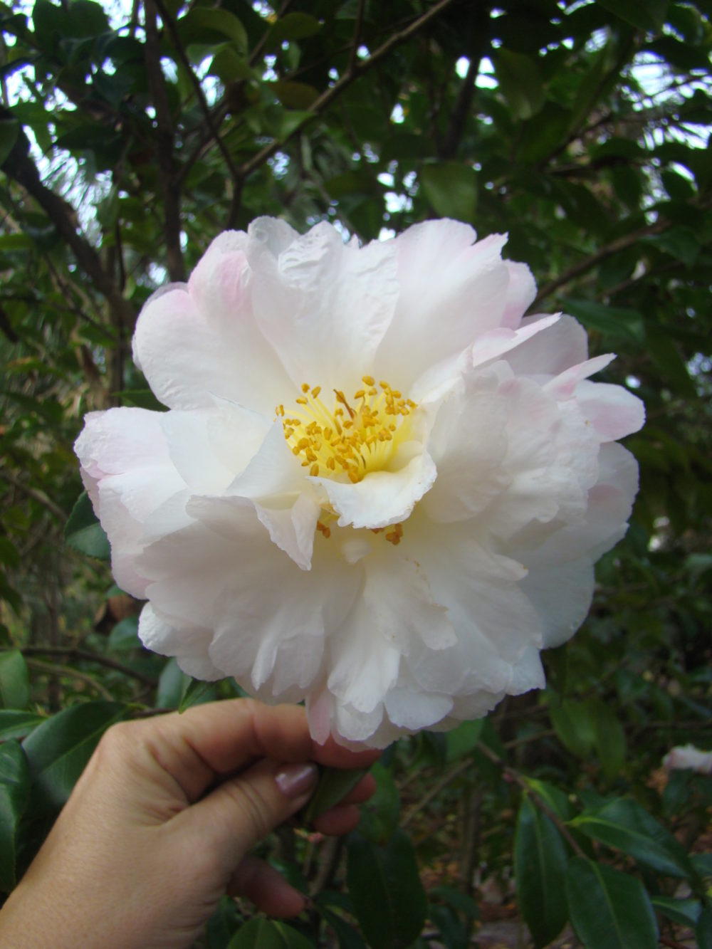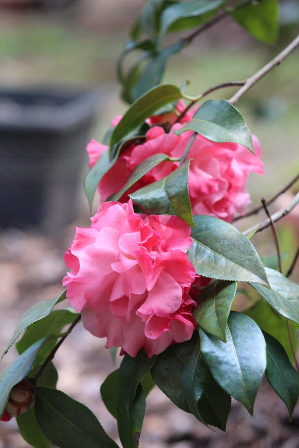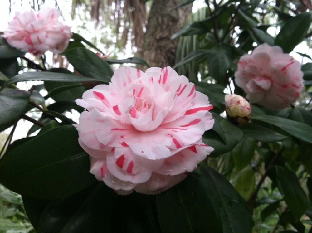 While camellias are attractive all year with their glossy evergreen foliage, it is the winter months when they shine with their magnificent flowers in bloom. With the trees lost and other damage to our home and garden, the blooming camellias are a pure joy and will bloom until March.
