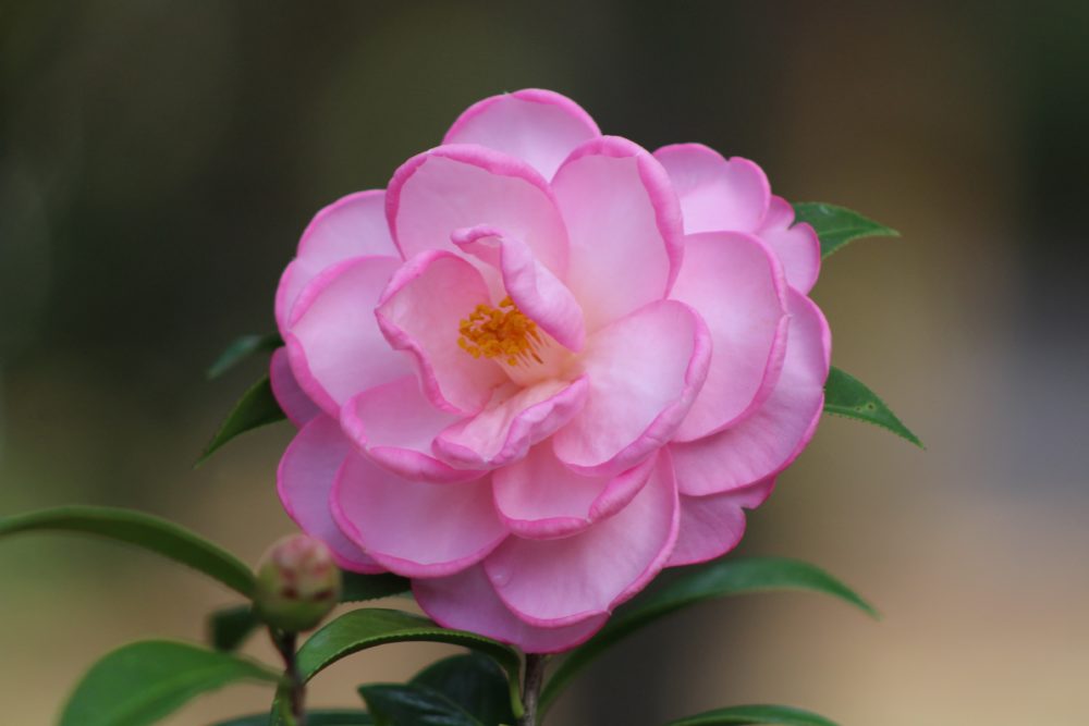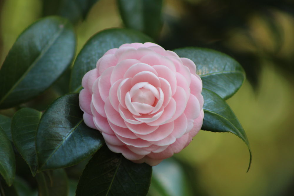 The two species usually grown in northwest Florida landscapes are Camellia sasanqua and Camellia japonica. Camellia sasanqua generally has smaller leaves and flowers and blooms in the fall. Along with having larger leaves and flowers, Camellia japonica typically blooms in winter or early spring. Through careful selection of camellia species and cultivars, a gardener can have flowers from October through April.