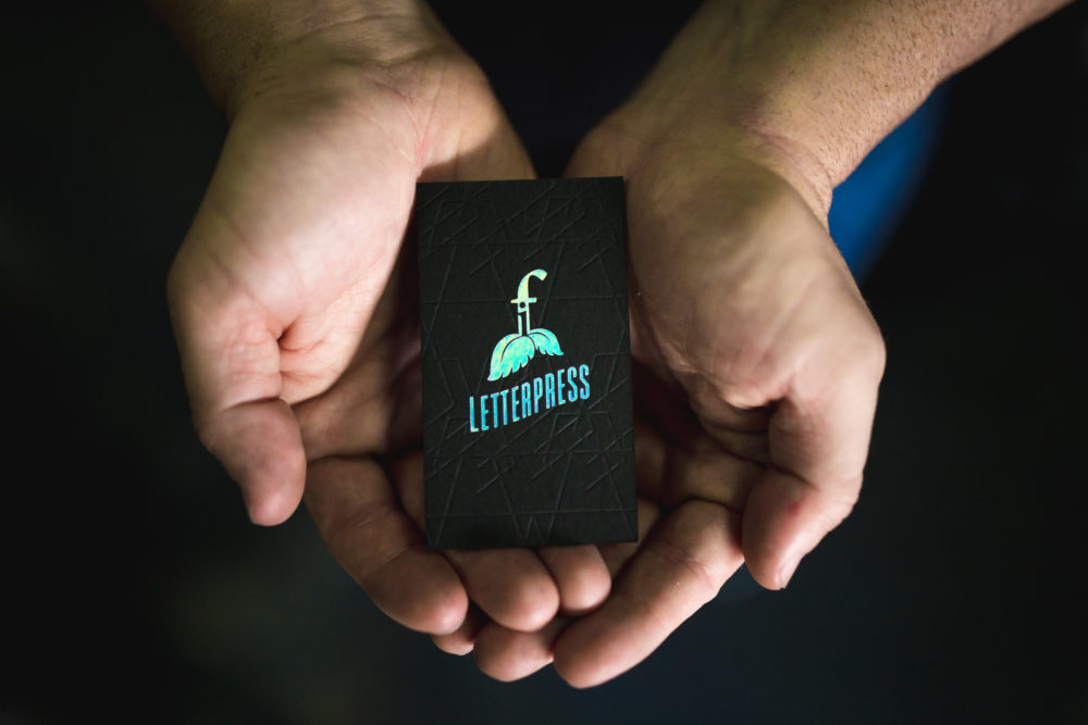 While it’s one thing to hear how letterpress printing is done, it’s another thing entirely to learn it. “There’s a lot,” Chris laughs. “There’s a good learning curve, but if you spend the time, you can learn the press. Design can be tricky, though.” That’s the part that Chris says can’t exactly be learned. And it’s where the craft diverges most from something like changing the oil in a car. “There’s definitely a touch to it. There’s definitely craftsmanship here. No, you can’t understand the fundamentals of the press and then just start making nice prints. It does take that attention to detail. Letterpress is also subjective. You have a wide variety of qualities out there. It’s one thing I stress to people—get samples [before you place your order]. You may find something cheap somewhere, and you may like the way it looks online, but you never know the quality you’re going to end up getting.”