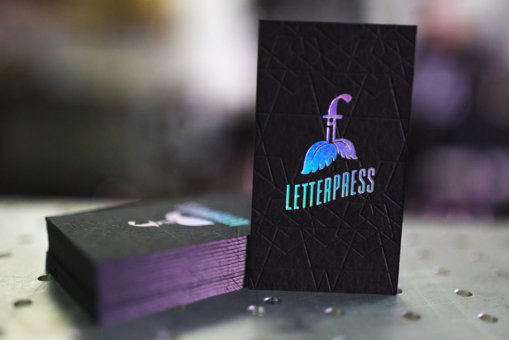 So, how is it done? “Letterpress printing is a relief process,” Chris explains. “The ink goes directly on a copper plate [which is pre-ordered, having already been acid-etched to design] or photopolymer plate [which Chris processes in-house]. That plate is then smashed into the paper.” Simple, right? Not so much. I asked Chris if he thinks the recipient can tell what goes into something like an invitation or business card. “I don’t think they know what went into it. I think they know it’s special. I mean, you’ve got custom-mixed inks, made ready to achieve a perfectly balanced impression to the perfect depth. Everything is duplexed, finished, painted, beveled all done by hand. It’s print-making. Not just printing.”