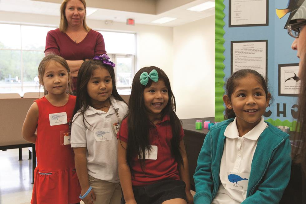 A group of children aged 5 to 12 years enters the classroom at West Bay Elementary School. In an instant, their eyes go wide. Never have they seen the classroom like this. Large displays are propped up and whales in all shapes and sizes adorn the room – it’s Whale Day, and that means that a group of young aspiring teachers led by their professor, Cristina Rios, has been preparing a fun-filled day for this particular group of elementary school kids. Not all children at West Bay Elementary get to participate, only a small selection. They are the group of kids who do not speak English as their first language. Several of the children have just recently moved to Bay County with their parents from different countries around the world. The initial difficulties of joining a new school, making new friends, and learning a new language, can be a challenge.