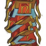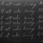 One of the great influences in Matty’s life is text – not just books, but the distillation of text; typeface, font and illustrative writing – like that of E. E. Cummings. Discussion on literary tattoos, books written in concentration camps and recollection of punitive writing assignments like “I will not (your offense here)” written 100 times on a chalkboard. Text, graphic art and fonts are placed and used throughout The Archive and are like a red thread.