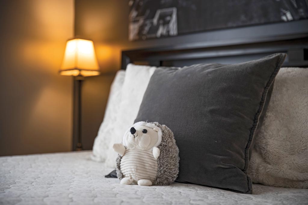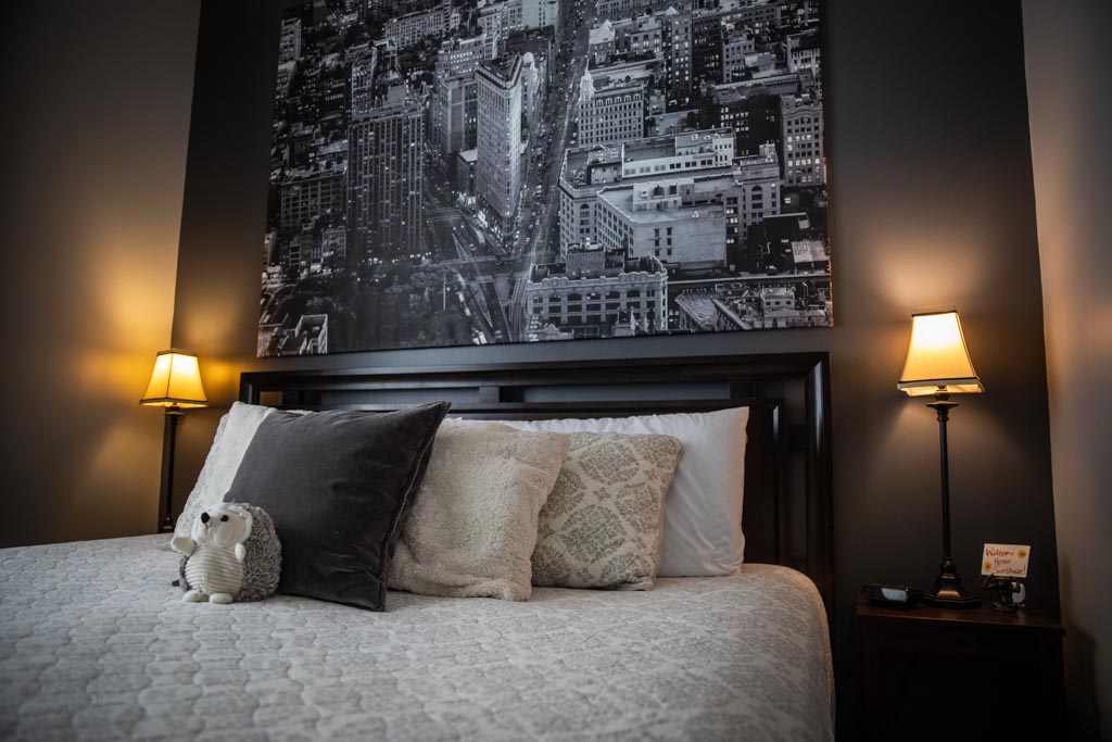 When we ask about their favorite place to spend time, David and Greg agree that the kitchen, sparkling with modern appliances and eye-catching accessories, takes center stage. “Prior to moving into our unit in 2015, we created our large kitchen area,” they explain. “We host a lot of friends and family and noticed that we always end up in the kitchen, so we enlarged its footprint and also created a large bar area.”