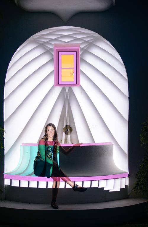 Amber Bushnell is an artist from Montana who visited the festival several times in prior years and participated for the first time this year. With a master’s degree in fine art, her passion is the creation of virtual animations. Amber uses the software Mad Mapper to create her unique digital art . In Montana, Amber performs as a VJ – a broad designation for real time visual performance. “When I went to grad school they did not have a program for virtual art , so I started exploring the possibilities, talked to business owners, and found spaces that I could use to project my digital art. I discovered this festival four years ago. It inspired me to develop my own style of digital graffiti . There is a theme throughout what I do. My style is inspired by locations and I have mapped the prominent architecture at Alys Beach for my contribution this year. The works “Layer Pendulum” by Amber Bushnell and “Phylogeny” by Claire Bennett of Toronto, Canada, won the best of show awards.