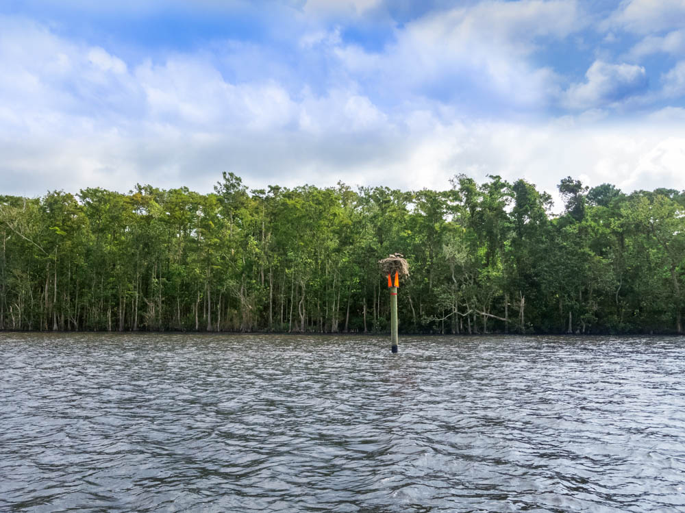 By the early 1900s, lumber was the most important cargo. In those times, steamboats hosted elegant parties and river trips. The Apalachicola Northern Railroad was incorporated in 1903. Its first train rolled over the bridge across the Apalachicola River in 1907. After World War II, the drawbridge was rebuilt by the Railroad to increase inbound traffic of pulpwood and chemicals. (Turner, “Florida Railroad History.”) It still surprises me when the railroad bridge is just ahead and you thought you were deep in the wilderness. The River looks peaceful yet, for decades, there have been fights over the rights of control of it. In the 19th century, the nearby city of St. Joseph wanted steamboats coming down the Apalachicola River to turn off at the Jackson River to siphon traffic to St. Joseph’s port, circumventing the town of Apalachicola. Over the years, dredging to keep a channel open on the Apalachicola, Flint, and Chattahoochee River System has caused its own problems. As a direct result of reduced river flows from diversion of fresh water or drought, in 2012 Apalachicola Bay collapsed ecologically. The harvest of oysters, shrimp, blue crabs, flounder, and other fish in Florida was severely impacted. Assessments by the University of Florida’s Oyster Recovery Taskforce and the Florida Fish and Wildlife Conservation Commission documented the cause of the decline as lack of freshwater flow. A commercial fishery failure was declared by the U.S. Department of Commerce in response to the loss of the oyster fishery. At the same time, the Tupelo honey industry had some of its lowest producing years. Today, the fight over water levels continues. On June 27, 2018, the U.S. Supreme Court ruled in Florida’s favor in finding that a Special Master must reconsider the lawsuit between Florida and Georgia over water rights and the Apalachicola River. Florida wants to limit Georgia’s use of the water to allow full flow into the Apalachicola River so that the Apalachicola River’s basin can again thrive. The Apalachicola River and its estuary system are of exceptional ecological importance and constitute one of the least polluted, most undeveloped, resource-rich systems left in the United States (Edmiston, “A River Meets the Bay” ( 2008). It has been designated by the United Nations as an International Biosphere Reserve, by the United States as a National Estuarine Research Reserve, and by the State of Florida as an Outstanding Florida Water and Aquatic Preserve. The River harbors the most diverse assemblage of freshwater fish in Florida, the largest number of species of freshwater snails and mussels, and it provides habitats for migratory birds and other animals.