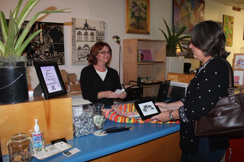 It is unthinkable that just a few months ago the space looked very different. It took months and numerous volunteers spending countless hours scraping up old linoleum floors, cleaning, tearing down old and building up new walls, painting, installing gallery lighting, plumbing fixtures and display areas to transform a neglected space into what ultimately became an inviting, contemporary art gallery, gift shop and classroom/studio, prompted by Parker’s passion for the arts, and supported by financial backers and an advisory board of like-minded individuals.