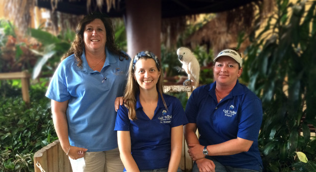 Pam has been with the facility since 2006when she came on as Marketing Manager. Later she took on human resources responsibilities and added more and more responsibilities and soon was involved in everything it takes to run the park. She states Gulf World is a great place to work where morale is high and everyone is happy to do their jobs. She credits owners Ron Hardy and Brad Miller and partner Dan Blasko with creating a great work environment where people care about what they do. “I put my heart and soul in here,” Pam said . “When you love a place as much as I do, you find more ways to be involved ”