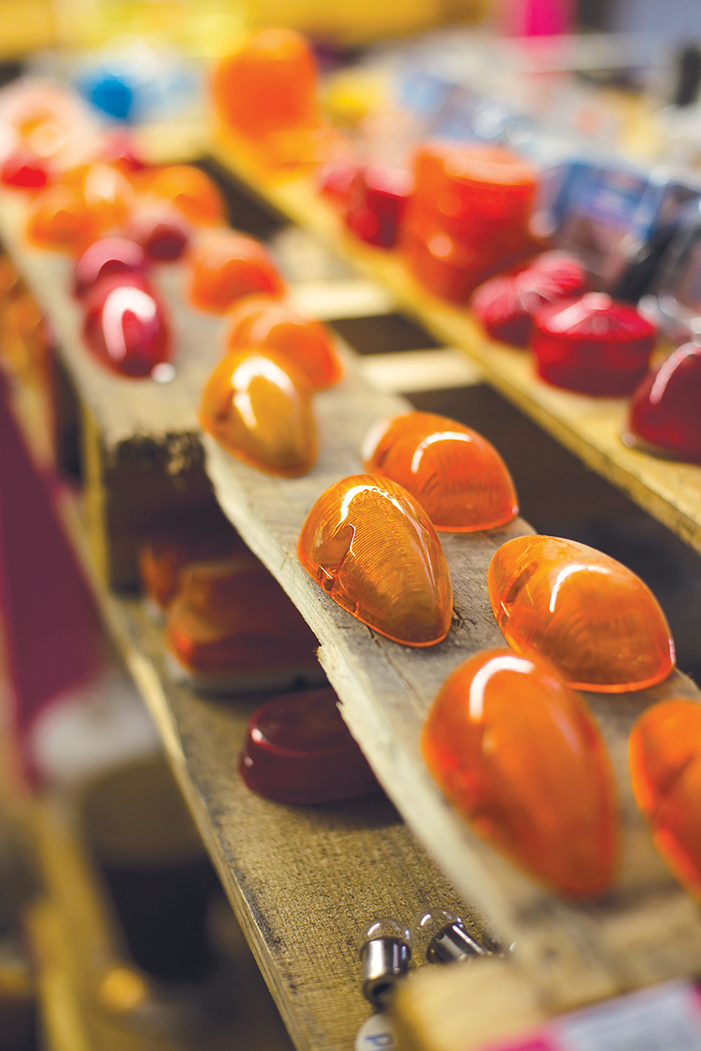 If a trailer has most of its original parts, it is easy to change, restore, or replace the wood. Parts can be very hard to come by so we often have to fabricate them. For something as simple as a trailer’s exterior aluminum skin, we have a machine that creates the custom patterns that can’t be found otherwise. We typically have six or seven restorations underway at any given time. This doesn’t count the repair work that comes in.
