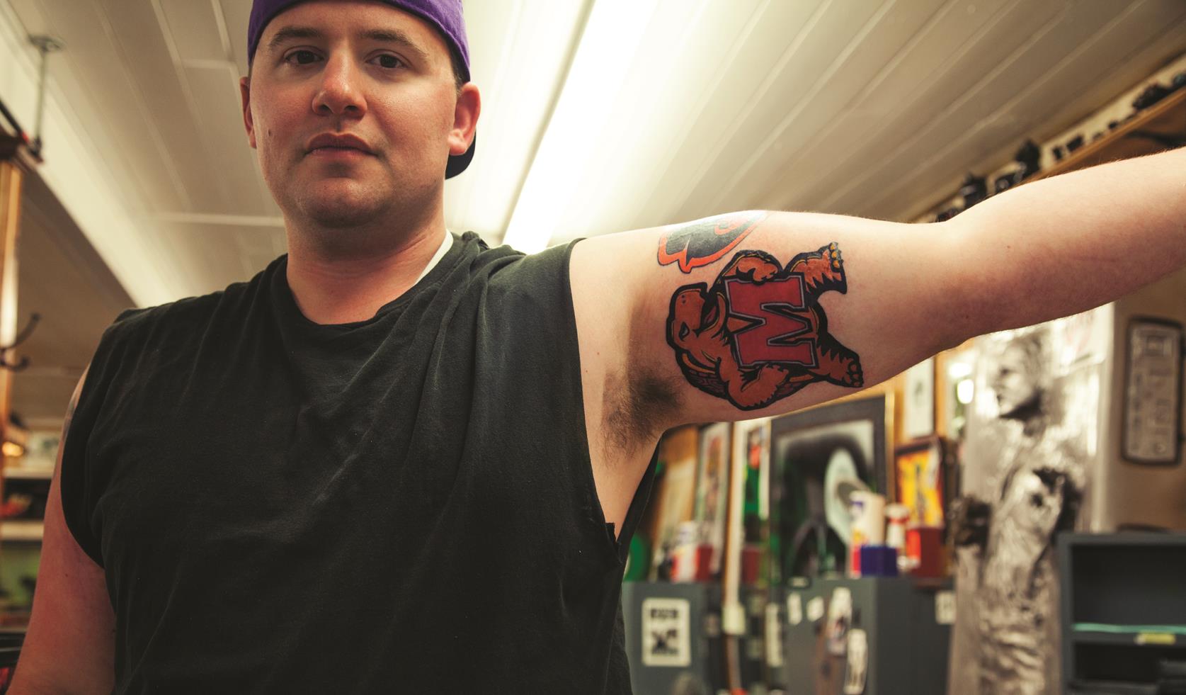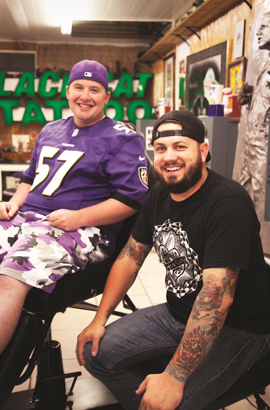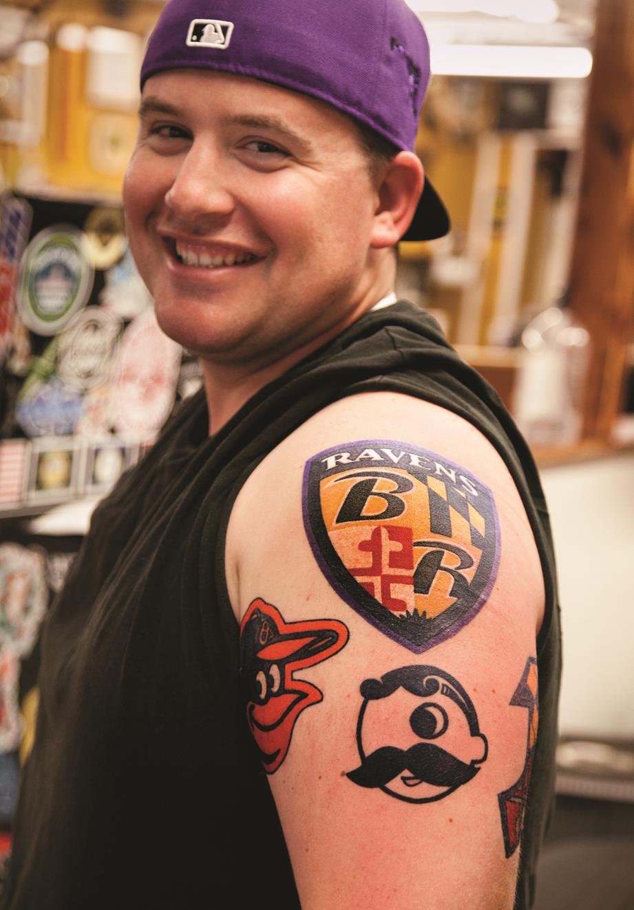 Joshua Lake is a fan of all Maryland sports teams. He loves all Maryland teams, so much so that he is keeping tattoo artist Brandon Adams quite busy. “My first sport-themed tattoo was actually the Baltimore Ravens’ head that I have in the middle of my shoulders. My first tattoo with Brandon Adams was the Baltimore Ravens’ shield on the top of my left arm, which is my favorite I might add.”