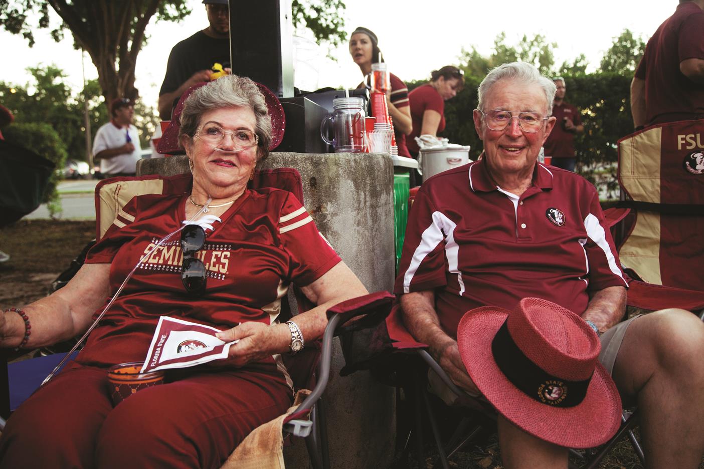 The Johnsons became Noles in 1995 after moving to Panama City Beach from Pennsylvania. Ben is a Virginia Tech Hokie and Lorraine is a Penn State Nittany Lion. Since they loved college football and tailgating they decided they needed to pick a team once they became Floridians. Ben and Lorraine’s son, Ryan, made the choice for us after attending his first FSU game shortly after Hurricane Opal hit the Panhandle. He proclaimed that he was going to be a Seminole when he was five years old. He stayed true to his word and graduated from FSU in 2013. Their daughter, Maggie, on the other hand still loves FSU football, but made the choice to attend UCF. Their involvement as Seminole Boosters has evolved over the years, but they have had the infamous spot in Lot 2 for about 15 years! The Johnsons’ tailgating crowd gets bigger each year!
