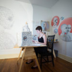 Sometimes I’m in a state when I’m making where I’m very mindful and I’m very present in the moment, and it becomes like meditation. I think of the work as if I am making cultural currency, making something an anthropologist in a thousand years might use to analyze how people were thinking in our time. When you look at yourself as a part of a much bigger picture, it’s as though you’re channeling all that energy out of the culture and out of the things around you and creating something from it. The inspiration, for me, comes from a love of that connection. I think that is what most artists are seeking, connection. If the art comes from a personal connection or a confrontation, or an act of rebellion, it’s still always about connection. Maybe that’s too optimistic a way to look at it… No, it’s actually a very beautiful way of looking at things in general. Obviously, you can see the advancements in culture and, if part of your community makes art and thrives, it reflects that parts of your community has the freedom to be spirited and creative. It reflects peace and harmony and basically the ability for people to give themselves to their thoughts and their inspirations, so to speak. Not every culture enables you to do that. Exactly! And it is beautiful, and I think interesting, because … and this is something that was said to me in Art School… a lot of people feel very jaded about contemporary art. Because now, when seemingly everything can be art, it can be easy to fear that that means nothing is art. Contemporary art is sometimes strange or different from what we’ve been taught to value in a work of art. A lot of people feel disillusioned by this. But contemporary art’s ability to “be” in everything is what makes it wonderful. From a painting to the simple act of making someone a cup of coffee. If we can open our minds up to that in our daily life, to see human acts as works of art, that is truly beautiful.