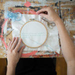 Art can evade definition… or perhaps it changes with each disciple. Jordan Kady’s work reflects her thoughts, phases in life, her learning process… it indicates her influences, tamed talent, and is the result of an unrestricted use of media. From pencil and paper and oil on canvas to more unusual media and tools such as applying paint with the tip of a sewing needle, photo transfer, video documentation of “disruptive” actions… in one of her recent art projects she even embroiders soft fabric to tackle hard realities. She almost religiously “makes” art and has carved time and space in every day of her life for the making process. In her home studio, a room in a south-facing 100-year old home in one of Panama City’s oldest neighborhoods, her multi-faceted work does not hold back. Each creation expresses her feelings and thoughts, which are often inspired by recent events and experiences with topics as deep and thought provoking as an onlooker will allow.
