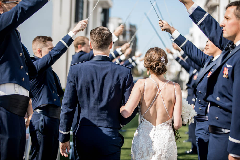While she cherishes every minute of her wedding day, one moment is special to Kristi. “When we were saying our vows, it felt as if we were the only people there and were truly committing our lives to each other forever. We had a deep connection already, but I felt like it reached another level at that moment.” The day was perfect, and the couple had meticulously planned another highlight. “It was a surprise to our guests that we had a choreographed dance,” Kristi says. The wedding photos show Kevin swinging her up into the air. “We had studied intensely for it, with lessons and choreography at Dance Life Dance Studio in Panama City. We loved the fact this would be one of the first things we would do together as husband and wife.” Their love story began two years prior. Kevin had moved to Panama City after completing his pilot training in Texas. He had never been to Florida. “I lived in Panama City Beach for about four months before I met Kristi. I decided to take the offer of my coworker to meet with a visiting group he knew.