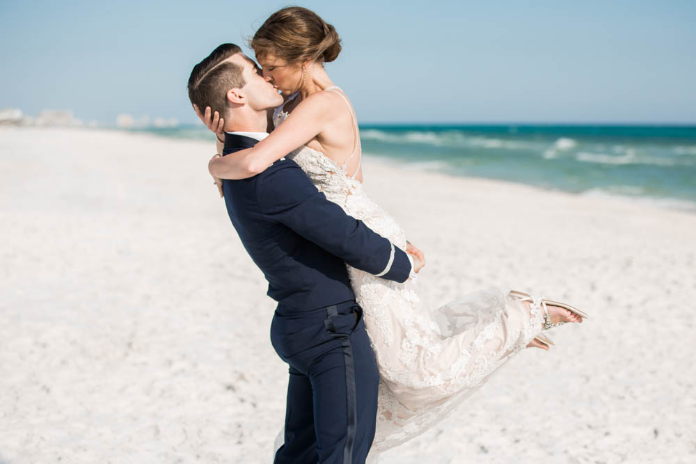 The town of Alys Beach with its breathtaking views and picturesque architecture offered the perfect backdrop for Kristi and Kevin’s wedding. Every facet of the day is vivid in their minds. “My favorite memory is Kristi walking down the aisle,” Kevin smiles. “We had already seen each other at the first look, which is my second favorite. She looked gorgeous. When I watched her walk down the aisle with her dad, my happiness and joy was beyond anything I had felt before.