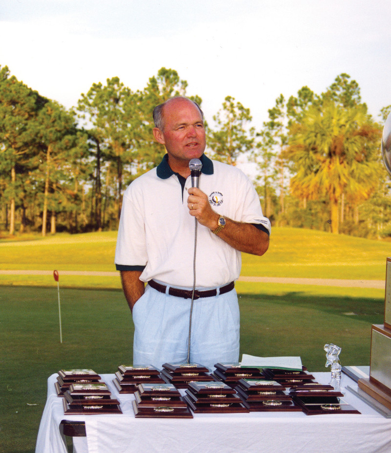 At the conclusion of the annual Gulf Coast Community College Foundation Golf Benefit, Dr. Bob McSpadden would help hand out the awards and thank the golfers for supporting the College and Foundation.