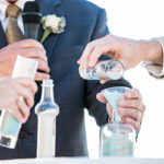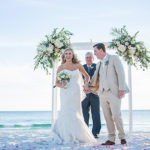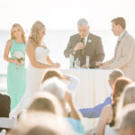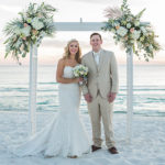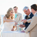 Sunlight danced over the water and waves when Sarah and Scott Carroll said “I will.” It was a beautiful day in November on Panama City Beach and the groom and bride symbolized the unity of their two lives with a sand ceremony of layers of sand from nearby Shell Island.