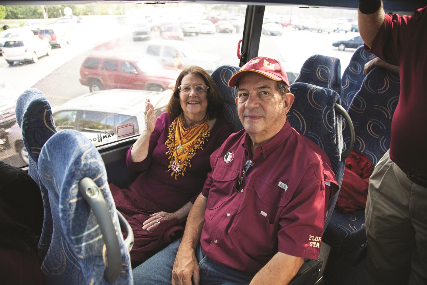 Whenever there is a home game in Tallahassee, Seminole Booster Club member Tom Najjar and wife Jeaneane will charter a bus and offer seats to Bay County residents who dread the drive to Tallahassee. For the more suspenseful game days, such as the game against Notre Dame on October 18th, they hire a double decker bus that can transport up to 81 passengers. Every seat on the double decker bus was taken on game day on October 18th and not just Booster Club members are invited. Everyone who wants to escape the traffic is invited to ride on the bus, even fans of opposing teams.