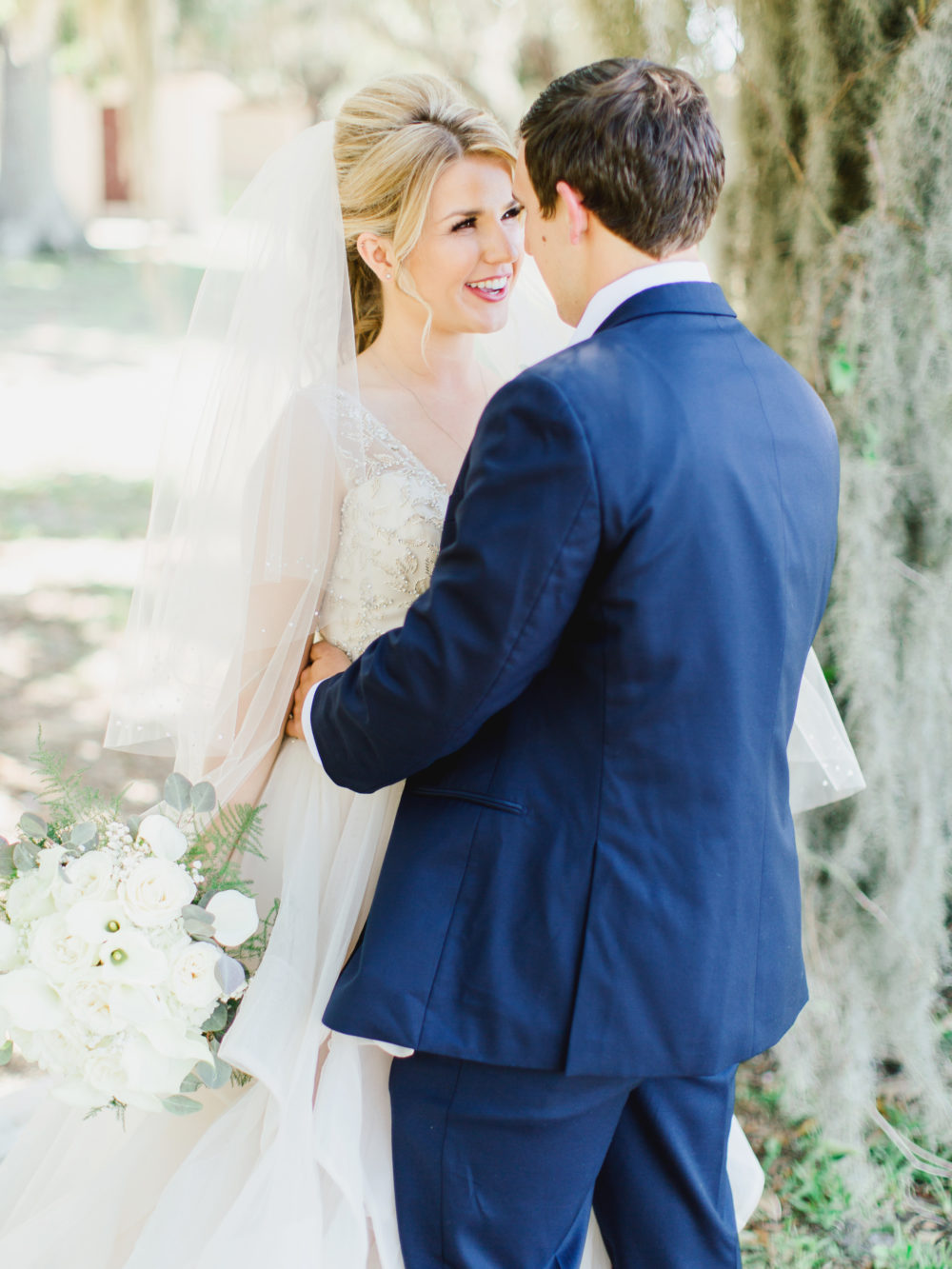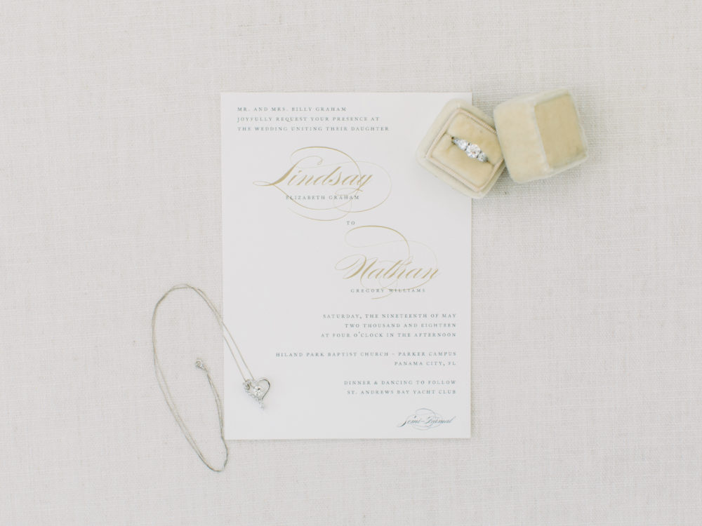 The pale green and beige hues of moss and oak trees and the dark blue waters of St. Andrews Bay inspired Lindsay and Nathan’s elegant wedding. Following the church ceremony, family and guests celebrated the young couple at the nearby St. Andrews Bay Yacht Club.
