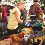 Janice Hanks Tailgate_15“We try to find ways to make the tailgate a memorable experience for our guests. We bring a “field kitchen” and have a fish fry for the FSU vs. FLA games that includes gator tail. On early games, we have an omelet station and make fresh omelets to order along with cheese grits, bacon and ham. We try to pick a theme for each game. We’ve had stir fries, pasta bars, Mexican, BBQ, low country boil, pancake breakfasts and many more.” For some games, they will also plan the food based on the team, for example, Virginia ham for Virginia or Boston butts for Boston College.