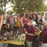 Also memorable was that during the construction of Langford Green the tailgate was temporarily moved to a parking spot on the future green. “There was nothing there but sand . We tailgated that season with a tent complete with side enclosures, a window air conditioner and green astro turf. I guess you could say, we had the “original Green” and with pride she remembers “When the National Boosters were holding contests and judging tailgates based on five categories, we won overall best tailgate several times. We even have special lighting we use in the trees for night games.”