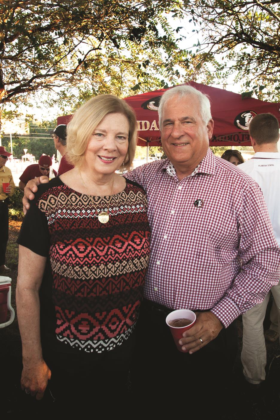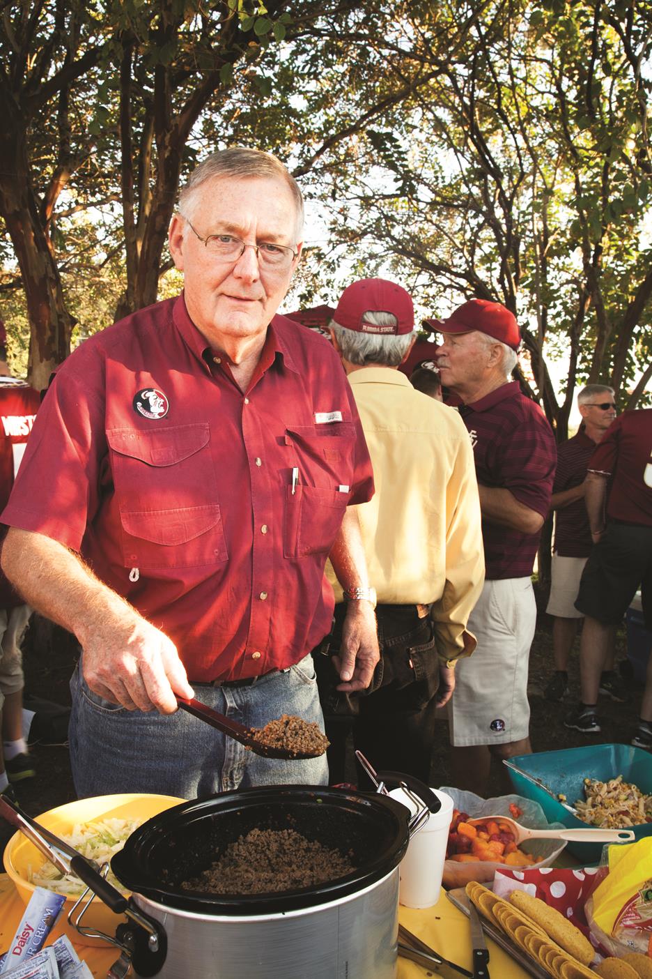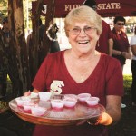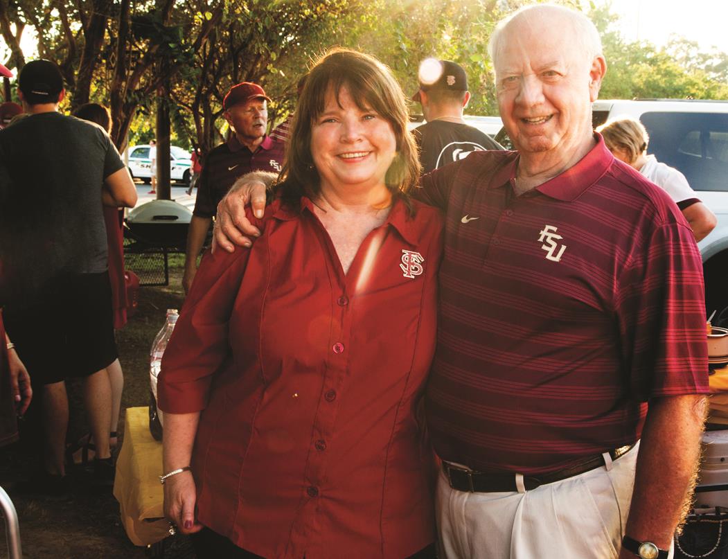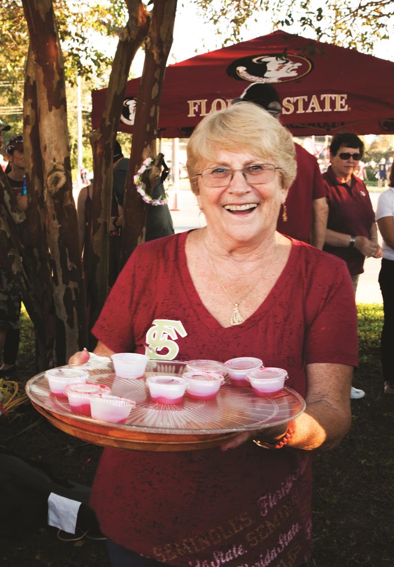 Janice Hanks and her husband Ralph moved to Panama City from Pensacola in 1976 and started attending FSU games in 1977. They live in Panama City and had their first tailgate in Tallahassee in 1978. At first, it was just the two of them. “We realized then and there that we wanted to start a tradition and organize a great tailgate that everyone could participate in and enjoy along with enhancing the game day experience. We enjoy hosting the event and always look for new ways to improve the tailgate experience. It has evolved over the years and continues to evolve and change,” says Janice. Nowadays, there are around 50 people who join the Hanks’ tailgate at the smaller games and 100 plus people on the big games.