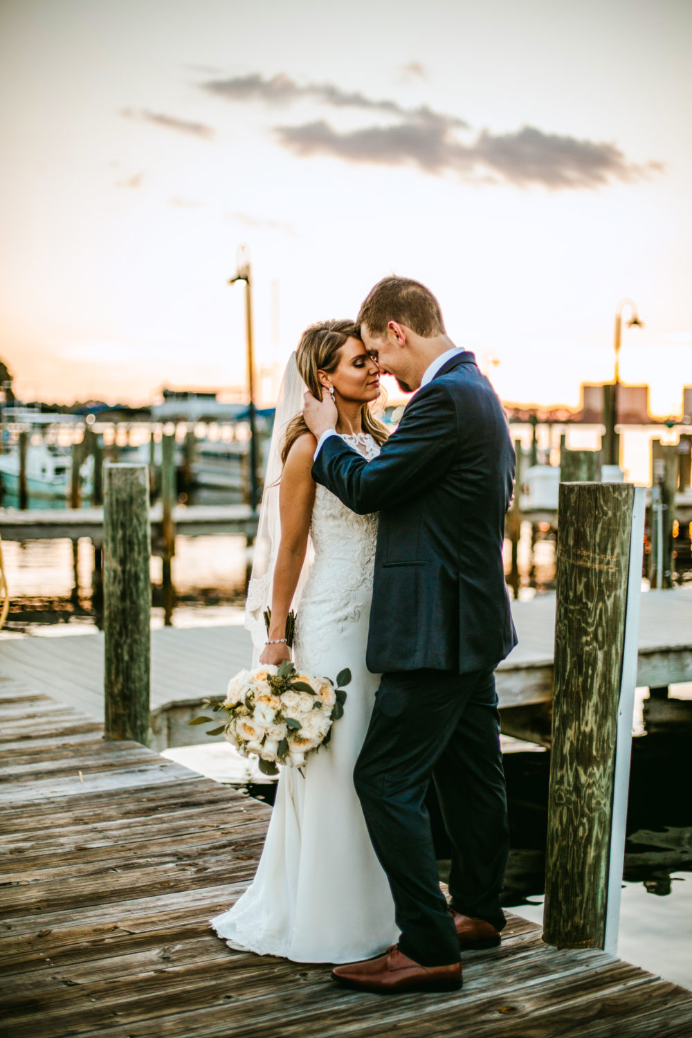 Looking back, they are thankful they chose their wedding day in October. Just four days later, the venue suffered severe damage from Hurricane Michael. What once was breathtaking views of the water, amazing sunsets and beautiful boats, was almost completely destroyed and washed up on the shore where the couple said their vows just four days prior.