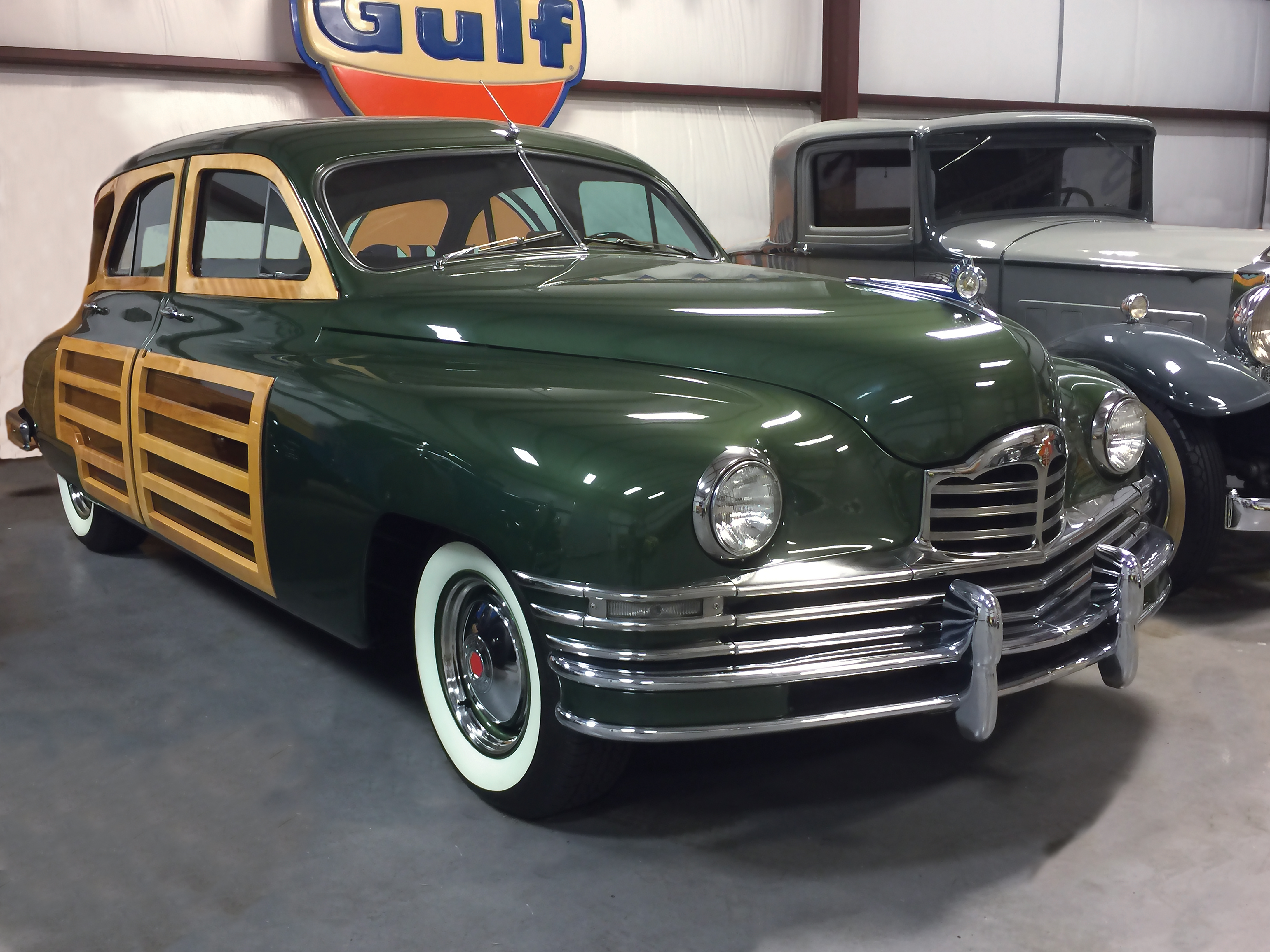 One of the most eye-catching cars in Jim’s collection is the 1948 Packard Series 22 Woodie Station Wagon. It won the People’s Choice Award at the Concours d’Elegance at Hilton Head Island in 2016. Cindy and Jim stumbled upon it in Moultrie, Georgia. It, too, was in pieces, most of which were crammed inside the car itself. Cindy recognized its potential right away and kept walking back to see it. She laughs, “How many wives would say, ‘Honey, get that one’?” Three hours later, they bought it and prepared to haul it back to Panama City. While Jim agrees that it was a rare find, he also recalls that, at the time, it just looked to him like a lot of work, as the exterior was covered in primer, with all the trim, the glasswork, and rotten wood heaped inside the car. The Woodie underwent four years of restoration, during which time Jim traveled to the Gilmore Museum in Kalamazoo, Michigan on three separate occasions to take photographs and measure
