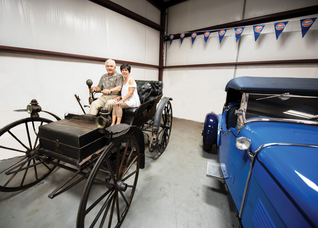 Jim notes that from time to time someone will ask him, “What do you have in that car?” Or, “What did it cost?” It is evident he has answered such questions a few times as he and Cindy both chuckle when he repeats his response, “Well, that car cost me new furniture for the house; this car cost a new addition on the back of the house.” Cindy and Jim Griggs met on Panama City Beach 30 years ago. Cindy, born in Holmes County, Florida, is a fan of antiques and vintage items, so she fully supports Jim’s car collection. “Whatever makes him happy, makes me happy. I’m thrilled that he has such passion for cars. It is not like we married when we were teenagers… he had evolved his way when we met and I had mine. But gardening, bridge, and junking is all mine!” The Griggs typically don’t go looking for specific cars; rather, cars find them.