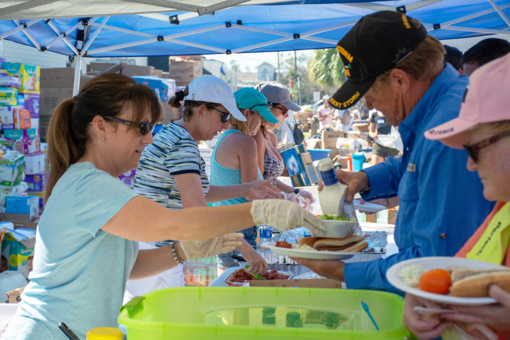 A church in Alabama sent 160 chainsaws. Mayor Anderson’s daughter, Hilary Frierson Keeley, organized the delivery of supplies from her community in St. Augustine and showed up with seven truckloads of supplies. The need for commodities would change every day. Often the presence and determination of the volunteers and their empathy meant so much more to many of the victims. “At the beginning, people wanted us to listen to them and they were breaking down … and they cried a lot, and we cried a lot. It was very emotional. Finding people like that in desperate situations, it’s terrible. Chainsaws were most important the first two or three days. We got probably around 250 and the City handled handing them out. With supplies and food, we served probably around 75,000 meals in the past five or six days. Right now, people are asking a lot for bleach, roofing nails, and tarps.”