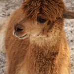 She currently has 16 alpacas in all, including two males (or herd sires), one gelding (castrated male), eight females, and four crias (baby alpacas). Alpacas, which may look like large furry gazelle to the uninitiated, are actually related to llamas and camels, and are part of the Camelid family. They are herbivores found in the Andes of Peru and, because of the cold temperatures at such altitudes, they grow a thick “fleece,” or fiber, which is much coveted for its softness as well as durability.